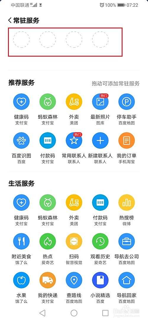 第一步华为手机的服务直达是根据场景智能推荐或者自定义快捷功能入口,如下图所示: