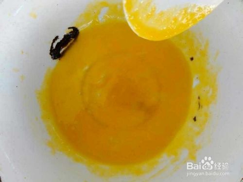 第四步:搅拌均匀后,加面粉(一定是低筋面粉),加入4勺。
