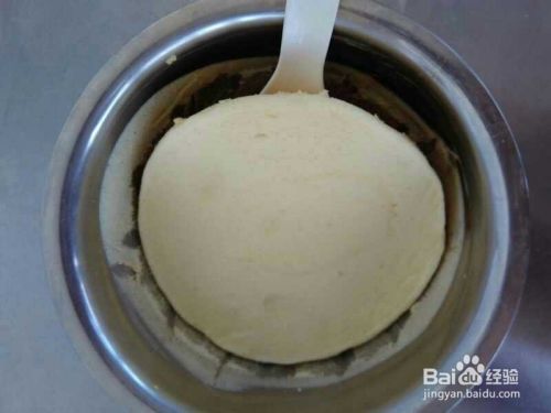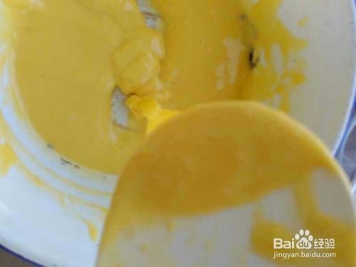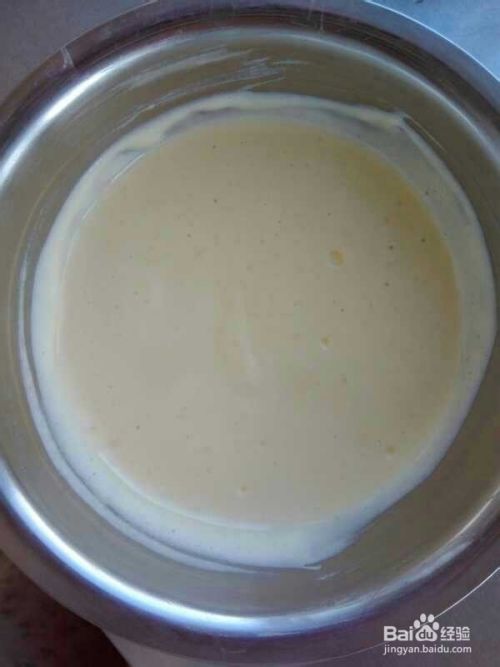 第五步:搅拌后铲子将面抬起来,面粉自然能够向下流就可以,千万不要太稀。