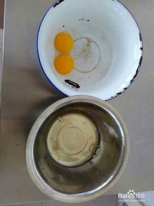 第二步:打鸡蛋,需要将蛋清,蛋黄分开打入干净无油的盆中。