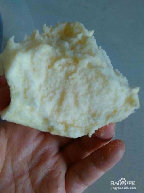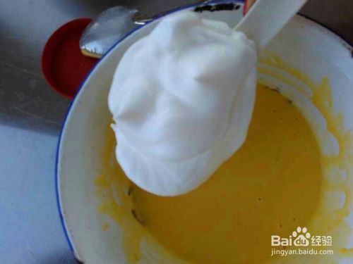 第八步:将打好的蛋清分3次混合在蛋黄里,然后像炒菜那样搅拌,速度快一点比较好,可导致蛋清消泡,如下图。