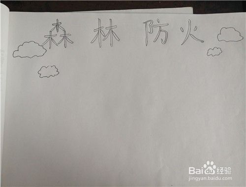 写好标题后我们在来在标题的两边画上几朵白云来装饰标题。