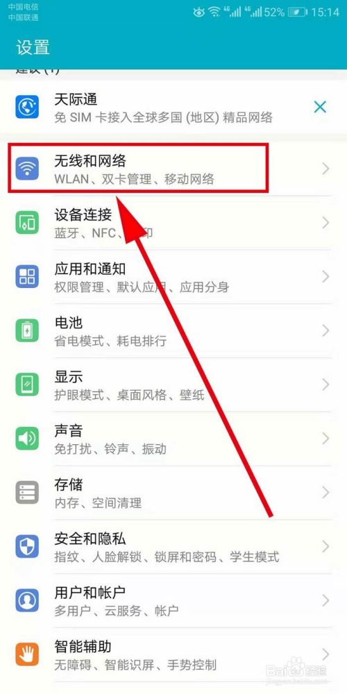 在打开的【设置】界面里,找到【无线和网络】选项,点击并打开它