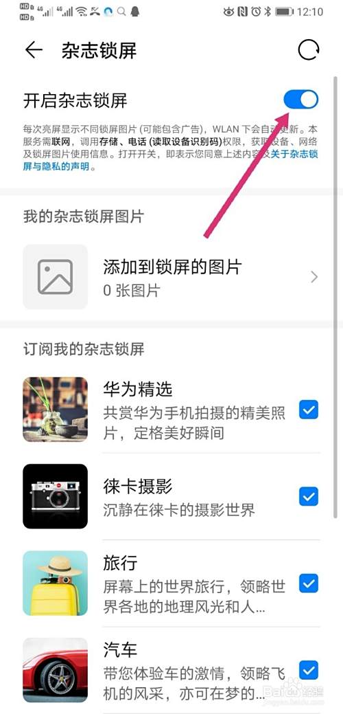 3、返回设置,点桌面和壁纸,点杂志锁屏,把开启杂志锁屏关闭即可。
