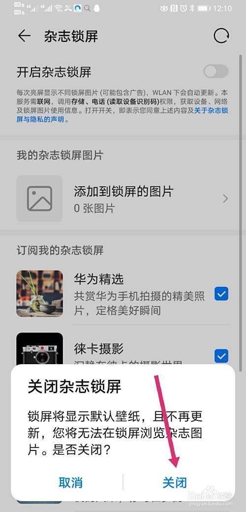 页面弹出关闭杂志锁屏提示,点击关闭即可。