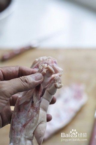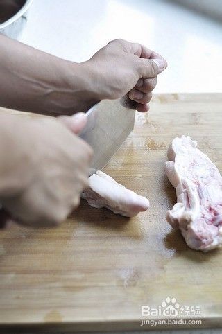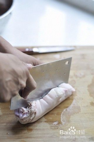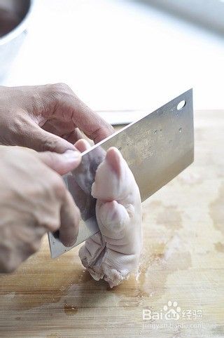 用刀把猪蹄自骨缝处下刀,斩成大段