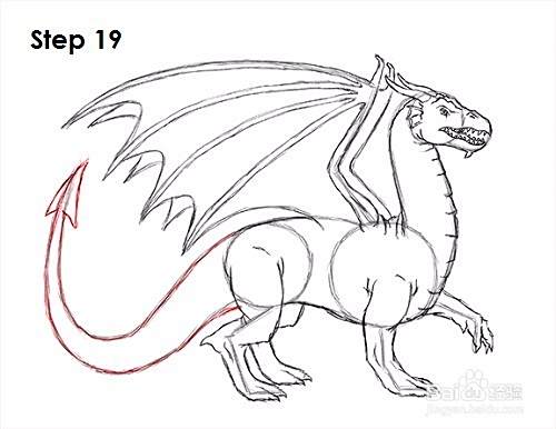 第19步:使龙尾的形状变暗。如果你愿意,你可以在最后画一个箭头状的点来获得额外的细节。