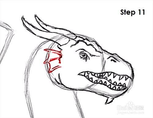 第11步:如果你愿意,你可以在龙的角下画一个耳朵以获得更多细节。