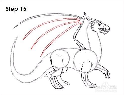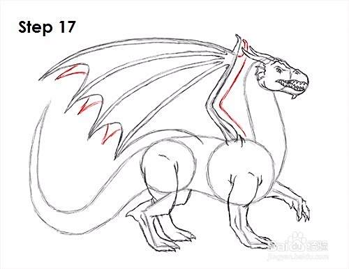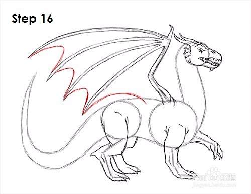 第17步:用前面的龙翼作为指导,在另一边绘制翅膀。