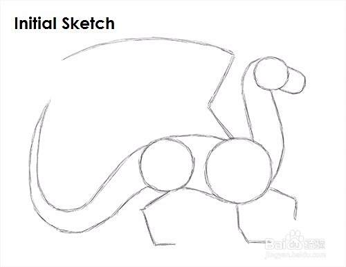 第7步:在身体的顶部画一条斜线作为龙的翅膀的指导。