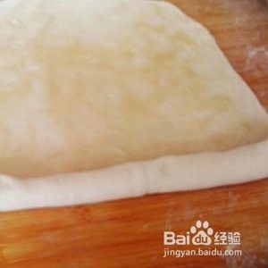 将半发酵的面用擀面杖擀匀,倒上少量的调和油
