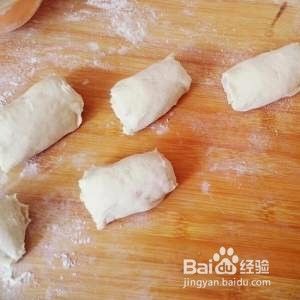 将上图中卷好的面用刀切成适当的大小的小块儿面团