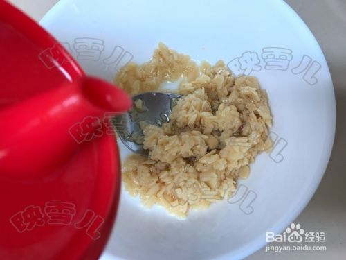 取两汤匙的蒜米酱,加入油1汤匙,糖1茶匙,鸡粉1茶匙拌匀。