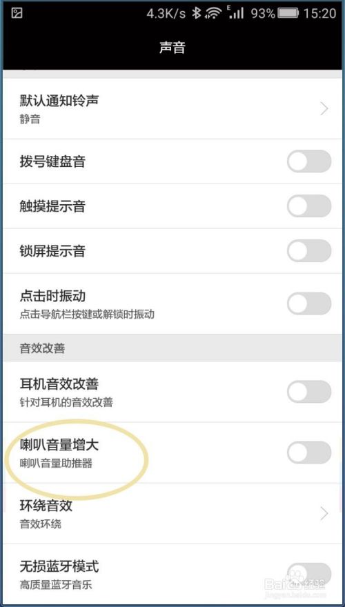 打开【喇叭音量增大】,如图,那么你手机的喇叭音量就会增大。