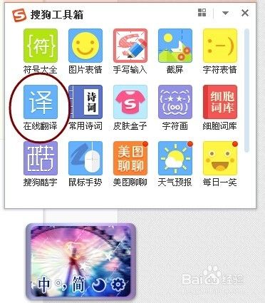 这个时候搜狗的工具箱已经打开,找到【在线翻译】能并点击