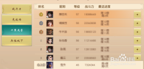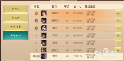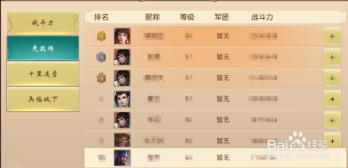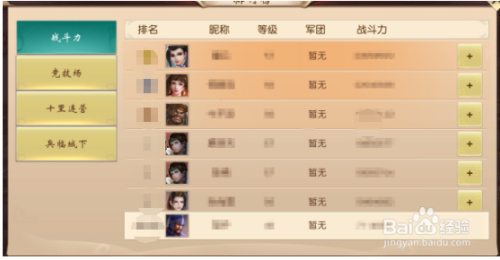 排行榜有战斗力、竞技场、十里连营、兵临城下