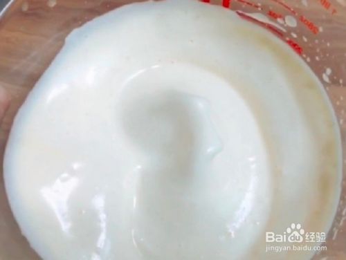 用打蛋器打发,打发至有纹路不易消失的状态。