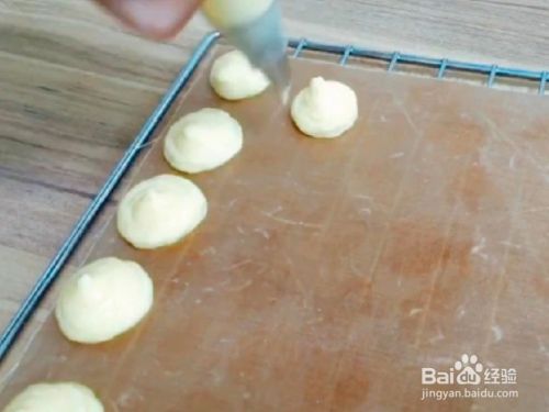 装入裱花袋,挤在垫有油纸的烤盘上。
