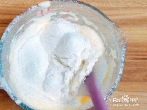 筛入低筋面粉,翻拌均匀,至每月干粉的状态。