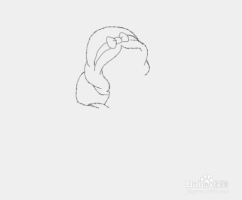 在头发上面画出白雪公主头上的卡子,然后在卡子上面画出一个蝴蝶结,如图所示: