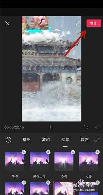 6、最后点击【导出】,就可以给视频添加特效完成。
