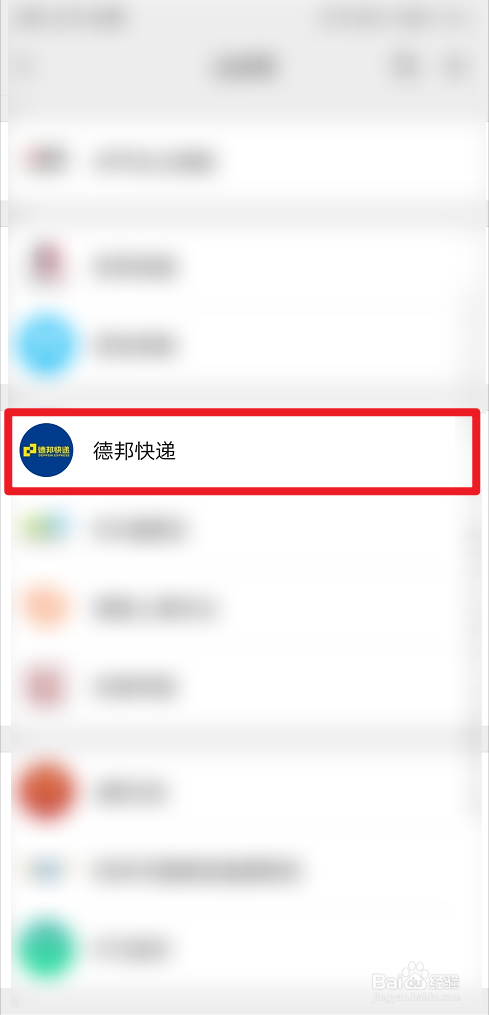 打开手机,进入微信,选择“德邦快递”。