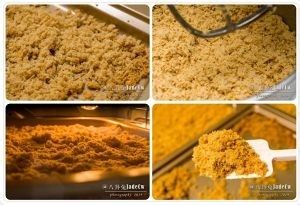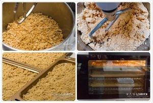 也可以不用厨师机,用刮刀或者手捣散。然后继续放入烤箱。风炉模式,180度,烤510分钟。最后的时间看个人喜欢,喜欢酥酥的就烤多几分钟,喜欢绒毛软一点甚至可以不烤。最后阶段一定要看住,不要走开,否则容易焦糊前功尽弃。