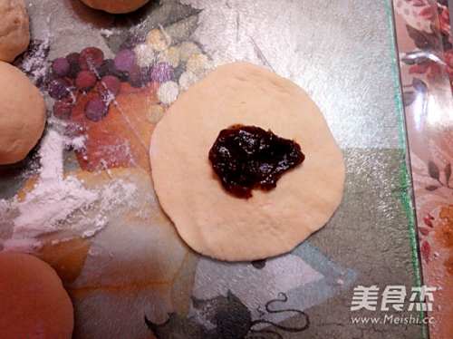 8擀成圆形后放入自制的枣泥