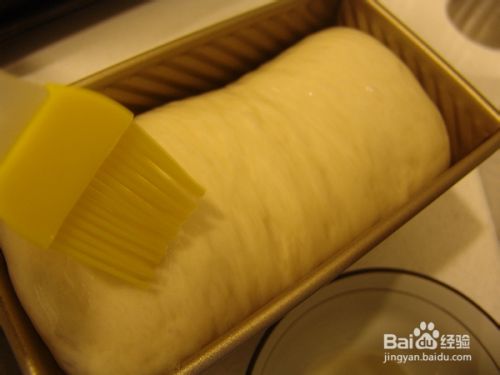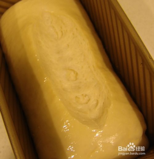 将吐司面团连模一起放入温度38摄氏度,湿度80%的环境下发酵80分钟。用烤箱发酵的,在里面放碗热水,保持湿度。