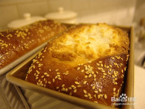 给发酵好的面团刷一层薄薄的枫糖水,然后用刀片划一个口子,开口里抹上椰蓉,最后撒上白芝麻。