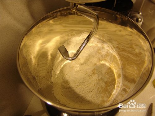 然后加入室温软化的植物黄油和盐,用低速搅拌2,3分钟再转中速搅拌至面筋充分扩展。
