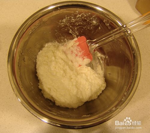 在搅拌面团的同时,准备椰蓉馅料,将椰蓉馅料部分材料搅拌均匀备用。
