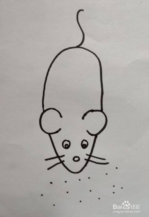 给老鼠的前面画上一些小米,老鼠偷米就完成了。