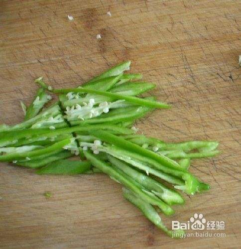 做法:将青椒洗净,去蒂和子。再用开水烫一下,沥去水分并切成丝装盘;放入酱油,醋,味精,盐,再淋上香油,拌匀即可。