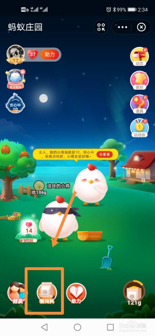 进入蚂蚁庄园,点击下领饲料