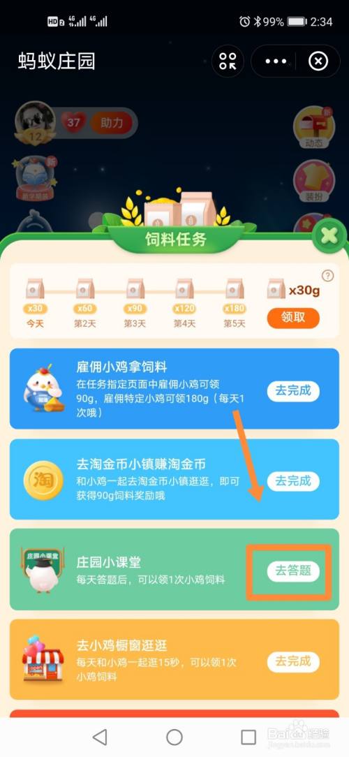 找到庄园小课堂,点击去答题