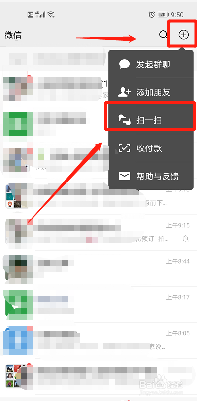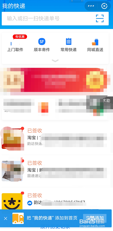 你如果是自己发快递,一般会有快递单,你可以打开微信,找到扫一扫,如图所示