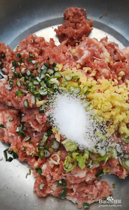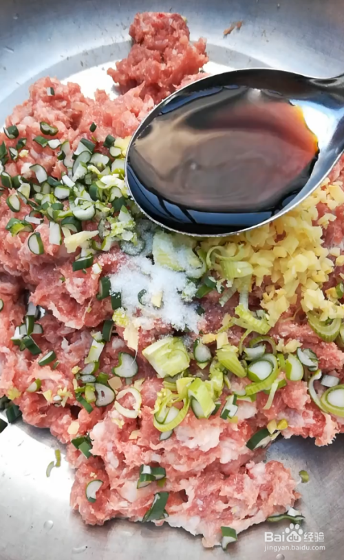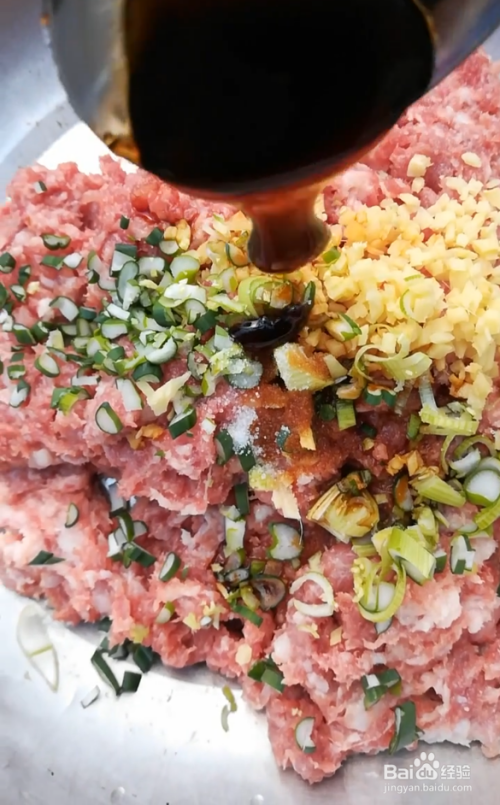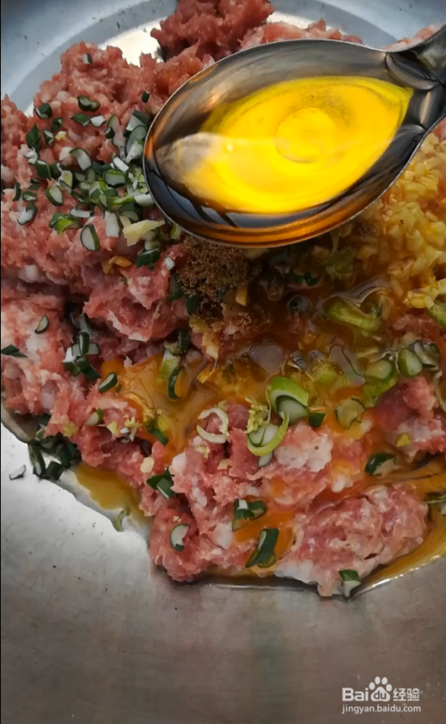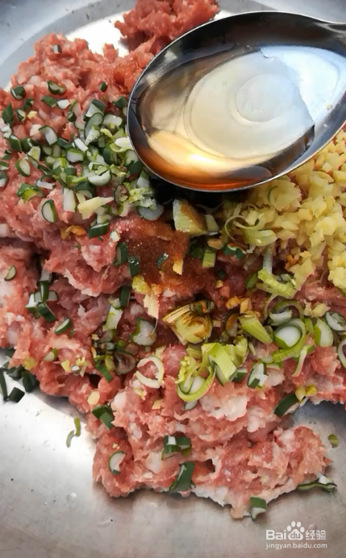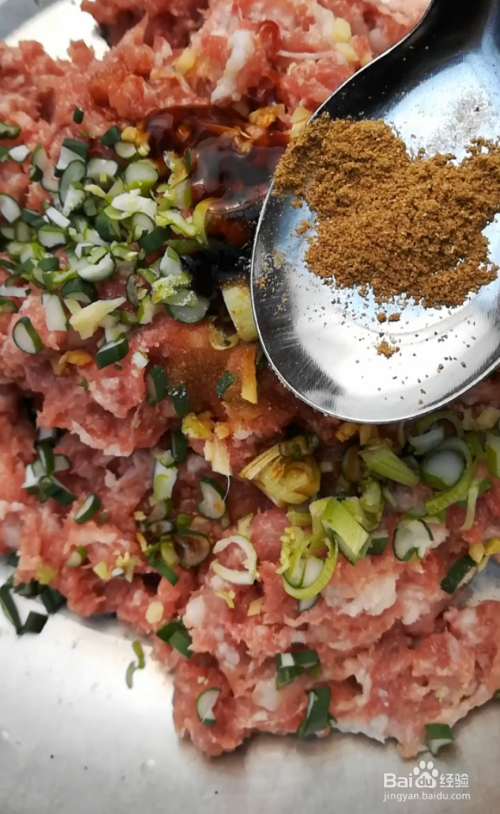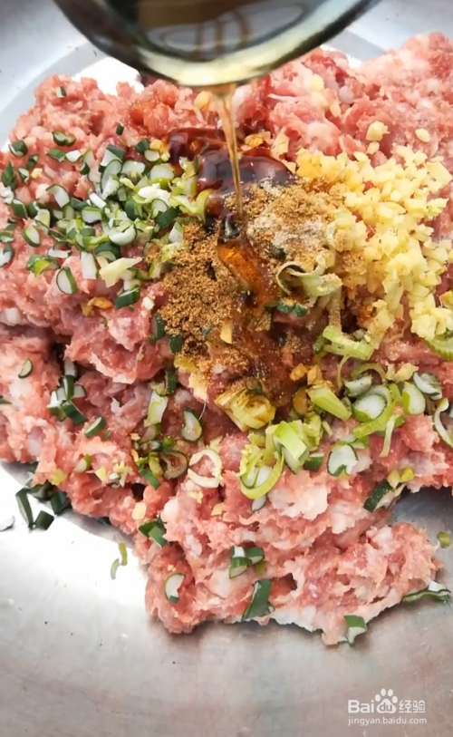 加葱姜沫、盐、酱油、蚝油、料酒、胡椒粉、十三香、香油、