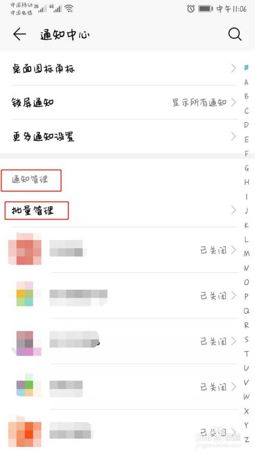 在【通知管理】下方有一个【批量管理】,点它进入;