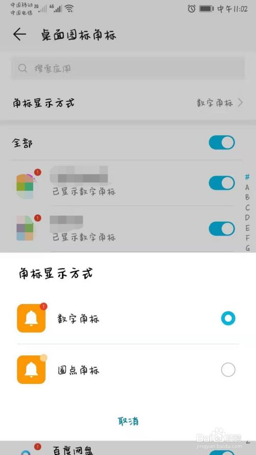 选择【数字角标】则会在应用图标右上角显示通知数量,选择【圆点角标】则在应用图标右上角显示一个圆点,无数量提示。