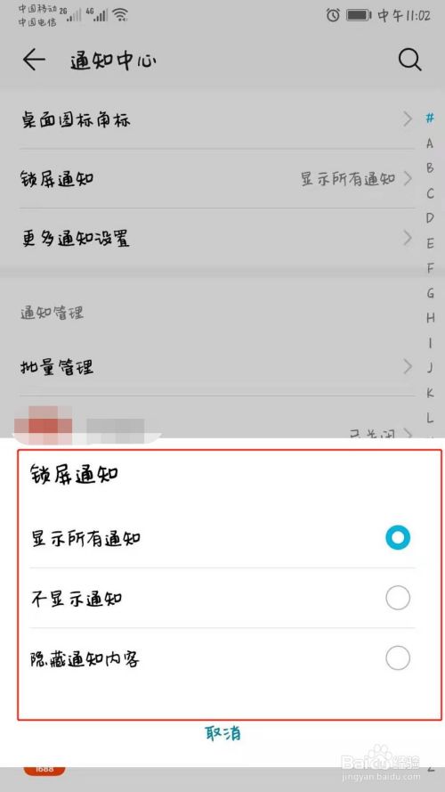 接下来我们再看【锁屏通知】,这里主要是设置锁屏状态下的通知信息推送,点开它,对!