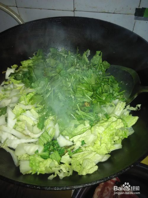 再放入香菜段,炒一会儿。
