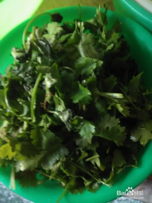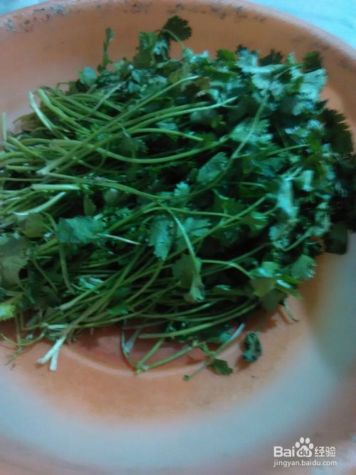 准备香菜。将香菜洗净,并切段。