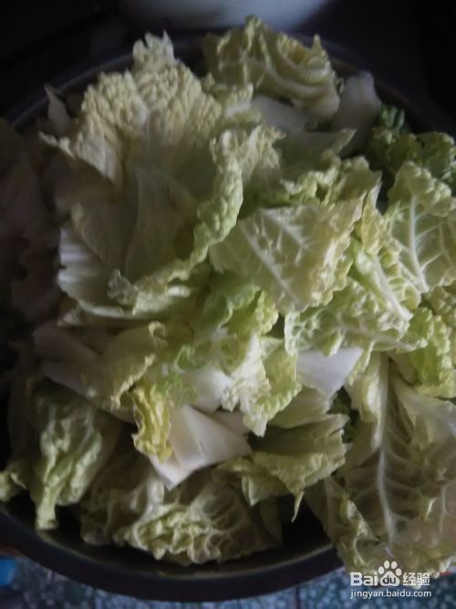 准备白菜。将白菜洗将,并切片。