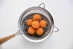 如果不能粘很稳,别慌,再重复裹一层蛋液,然后再滚一层面包糠就好了