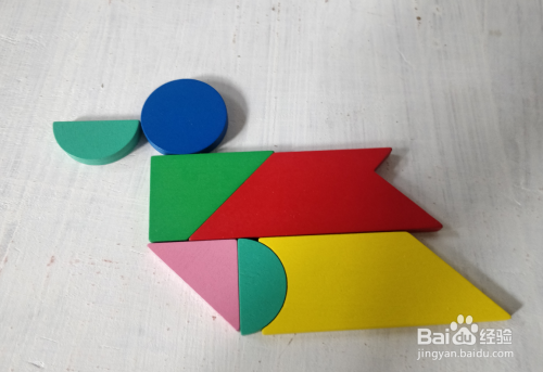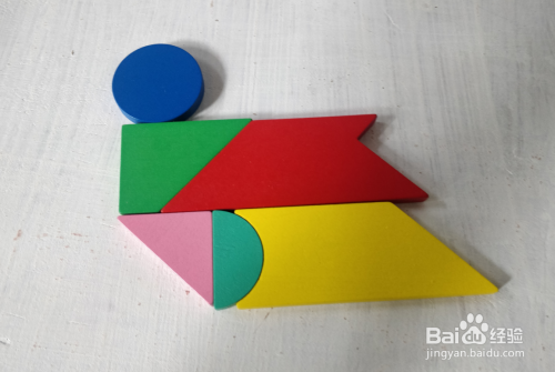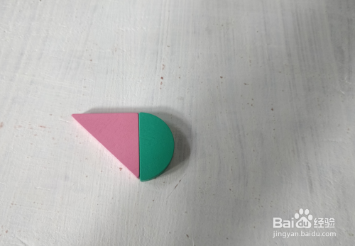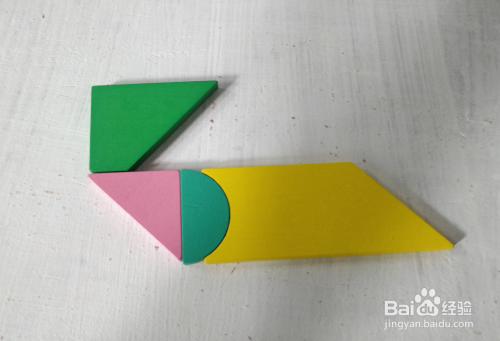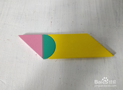 在半圆形右侧,放上黄色形状挨着,下端一齐,如图。