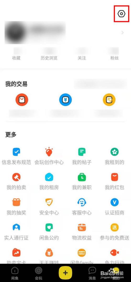 进入我的页面,很多服务助力闲鱼用户,点击右上角的六边形设置按钮;