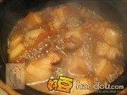6中小火把水烧一半时,加入笋干,用小火再慢慢煮