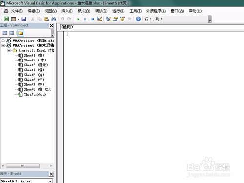 按下Alt+F11组合键,打开VBA编辑界面,点击左侧相应的工作表,出现右侧空白的代码编辑区,如下图所示。