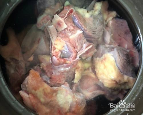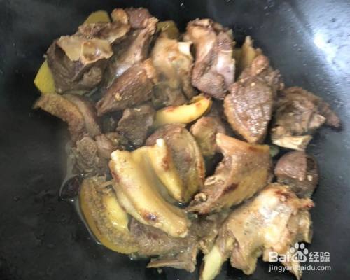 鸭肉焯水好了,然后用菜籽油以及酒进行煸炒一下。具体如下图